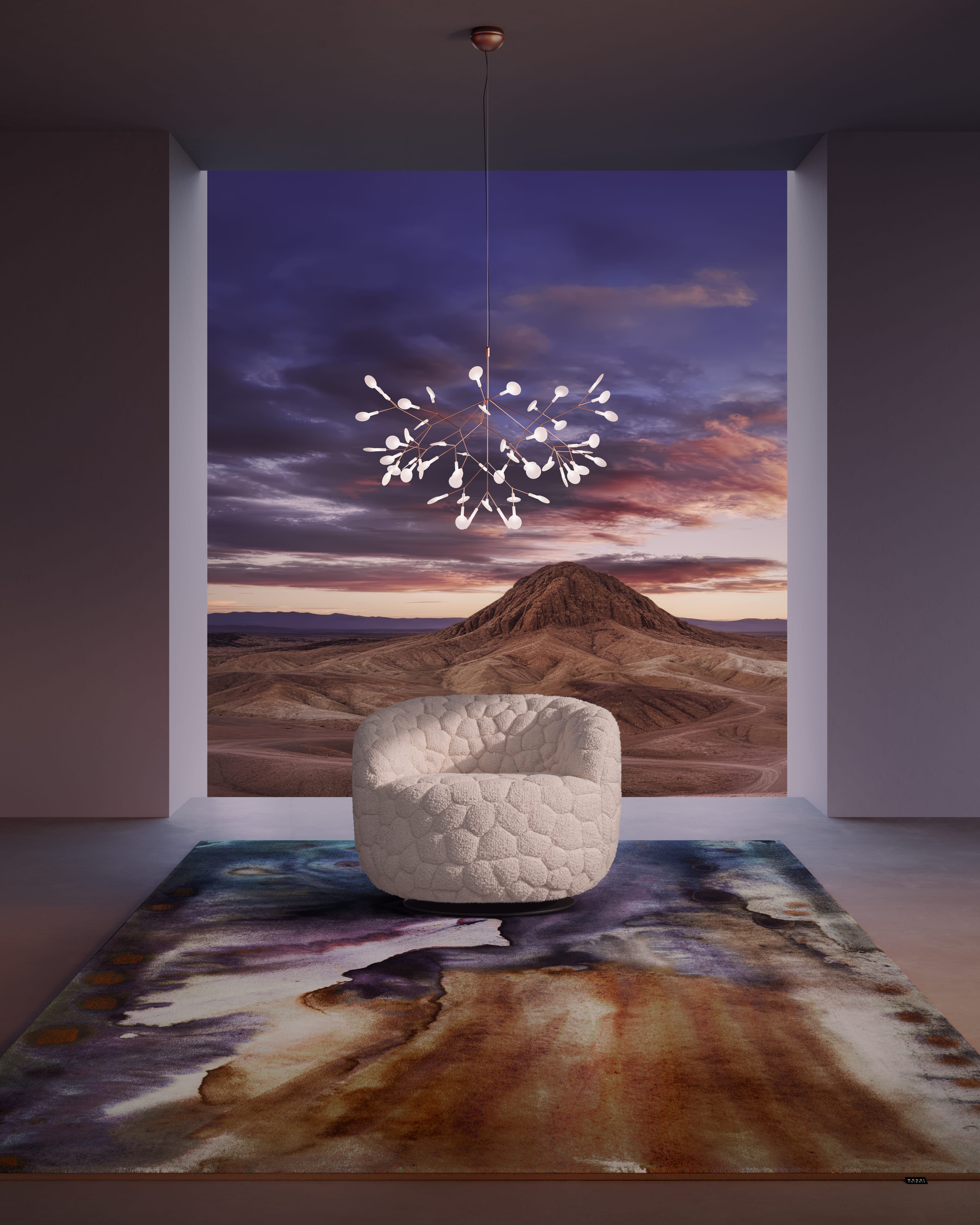 Emma Larson’s abstract watercolours find new form in this Moooi Carpets collection: A World Within. Each design reflects her vivid travels and dreamlike imagination, printed with high-definition precision. Soft layers of colour flow into one another, transforming floors into expressive art.