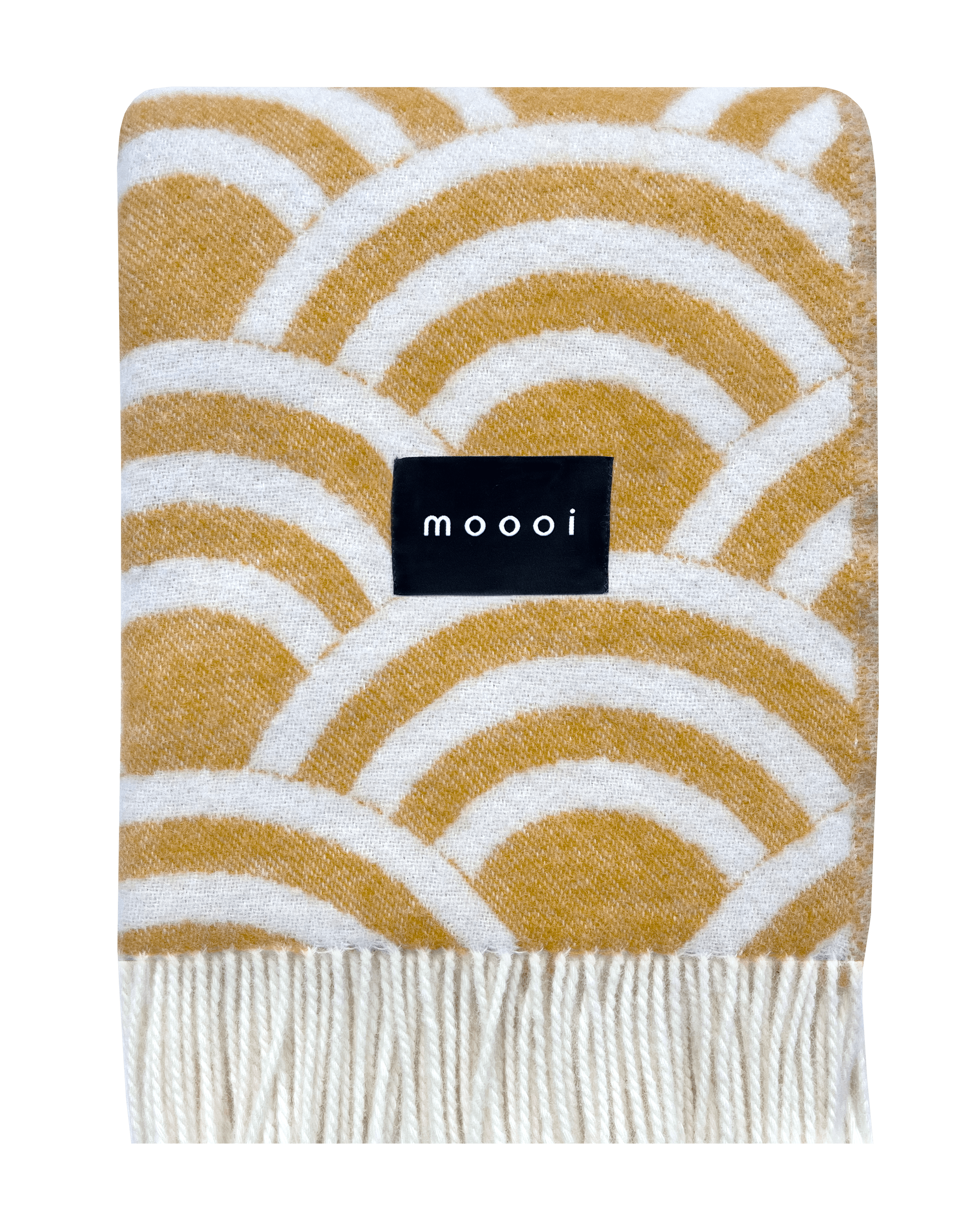 Crafted from heavyweight 100% pure New Zealand wool using jacquard weaving, this blanket evokes the undulating rhythm of ocean waves. Its distinctive Seigaiha pattern, an ancient symbol representing luck, strength, and resilience, adorns the fabric. The Lucky O’s blanket boasts versatility with its reversible design and generous dimensions measuring 130 x 200 cm.