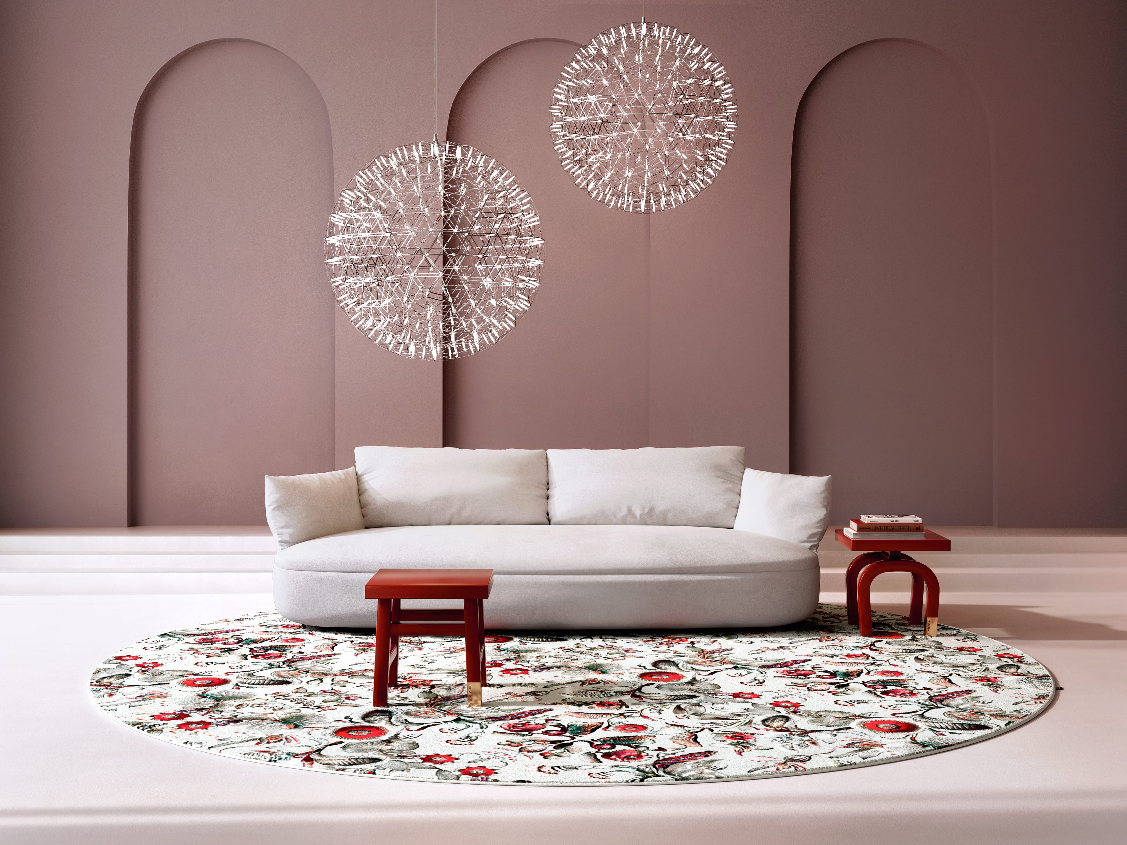 Two steel spheres, interconnected with LEDs, form a thin and openwork triangular mesh that transport the electric current.