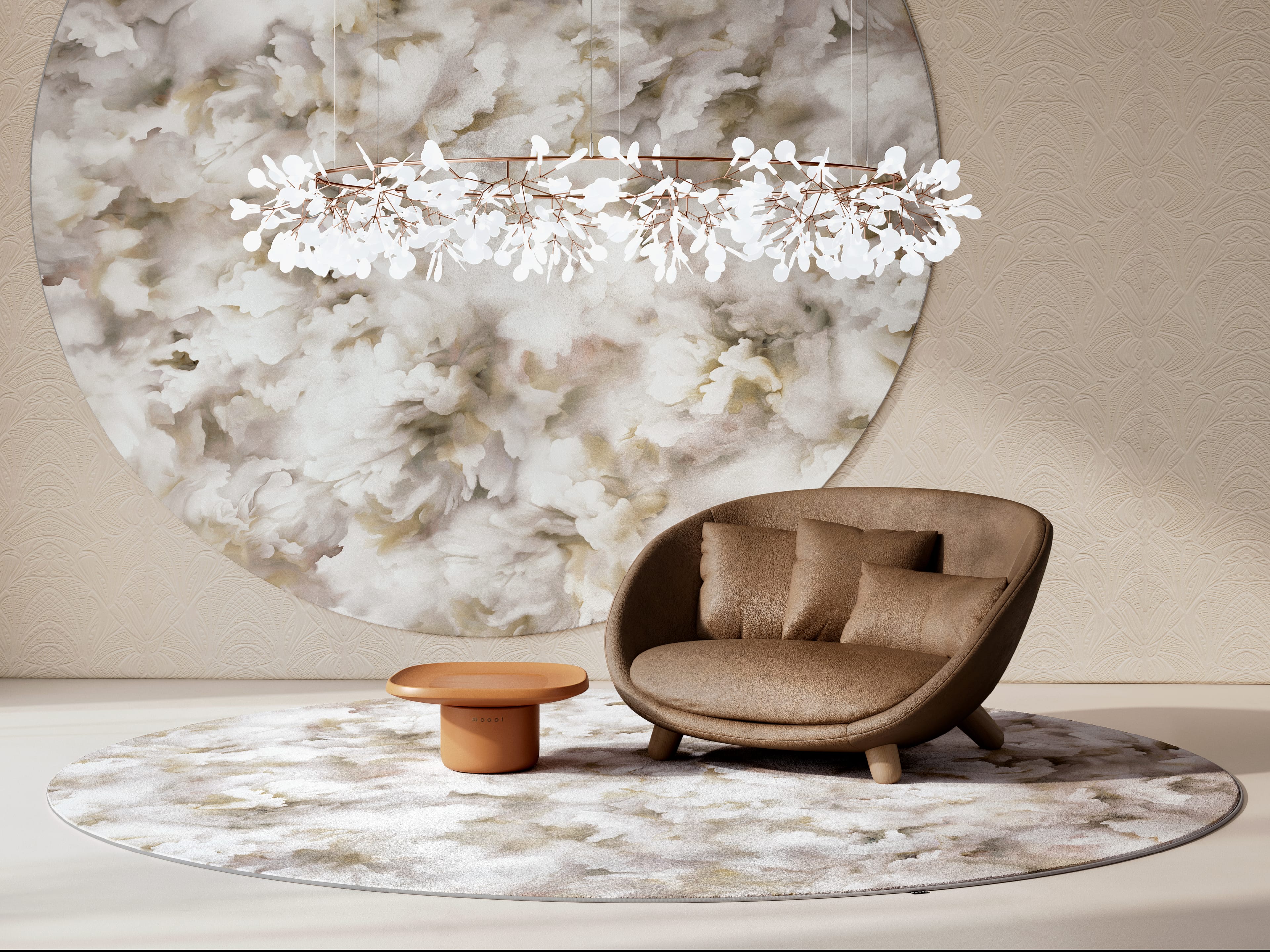 Soft floral silhouettes and pastel shades flow like dyed silk across the surface. Inspired by nature’s quiet beauty, the Silk Bombis carpet brings fluidity and tactility to any space.