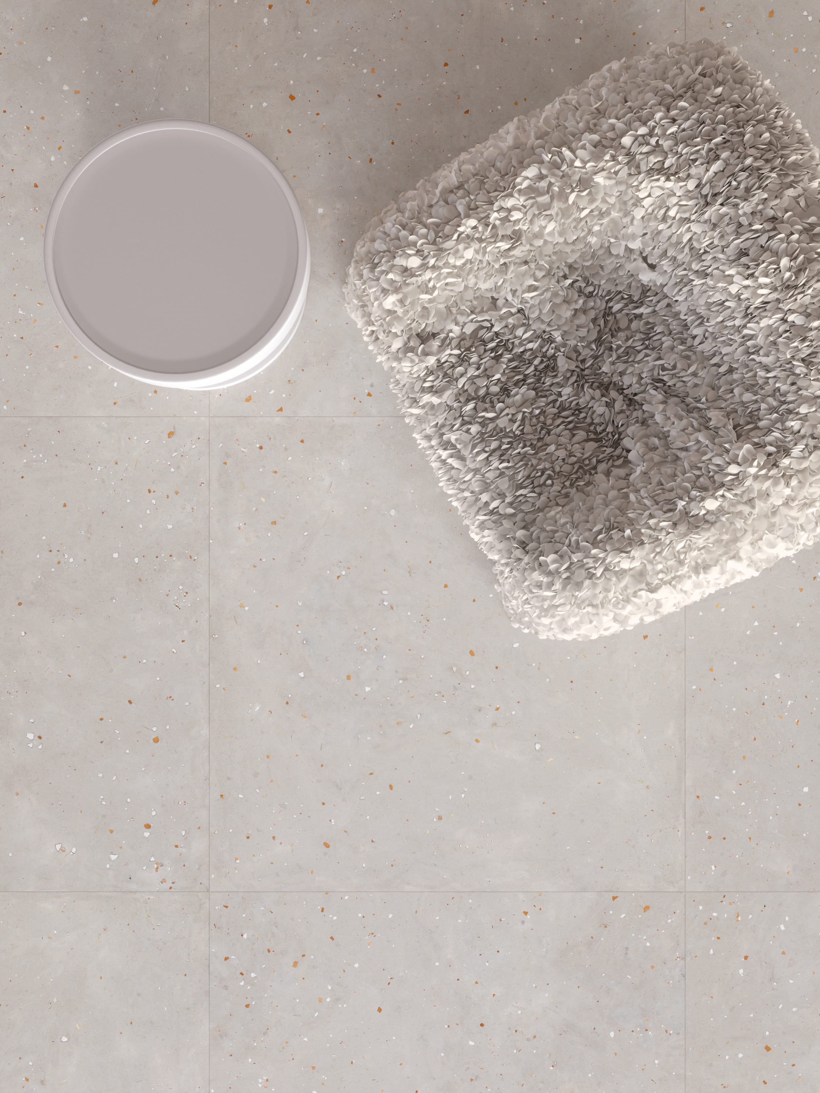 Celebrating the organic beauty of eggshells, Egg Scape features delicate fragments and terrazzo-like specks. Its subtle texture captures nature’s quiet imperfections.