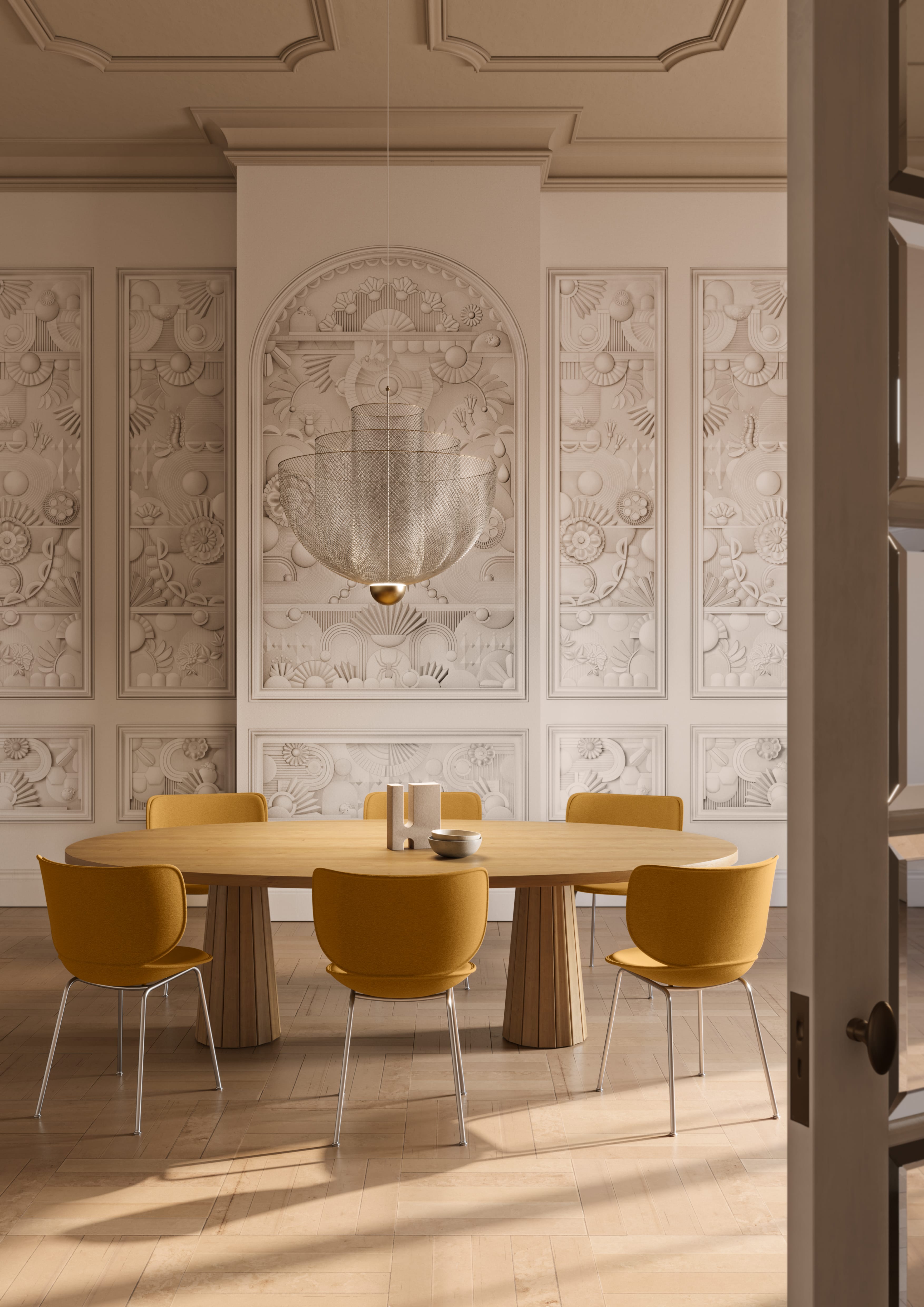 The Wallcovering is a tactile wallcovering that creates a soft, three-dimensional effect courtesy of the boucle fabric. The design takes inspiration from the spider’s intricate weaves, preferred leaves and Gothic arches.