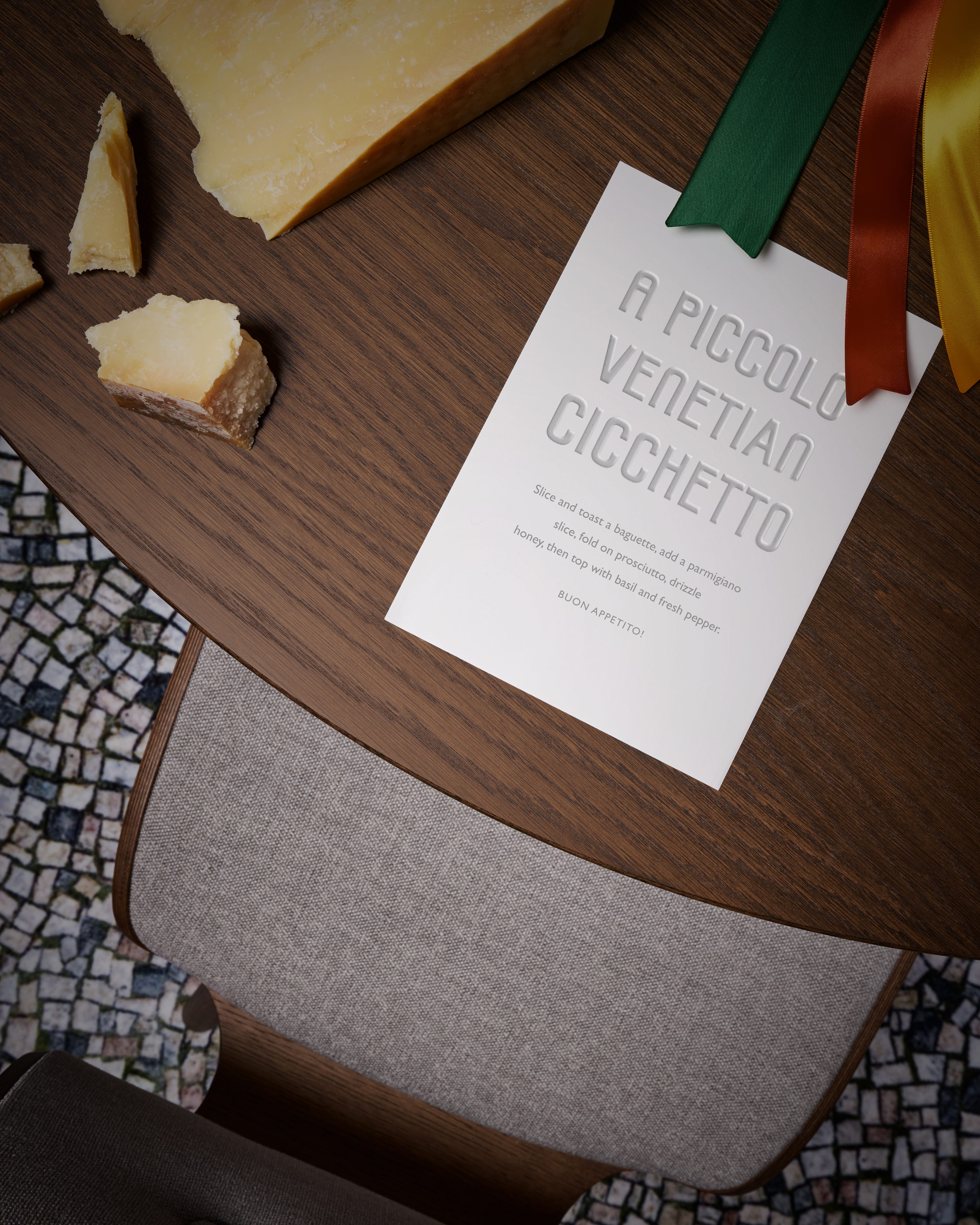 Channel sitting around an Italian piazza and create a little taste of Venetian inspiration to bring this ambiance to your own table. Our piccolo Venetian Cicchetto is the final element to set the mood for this chic dining setting.